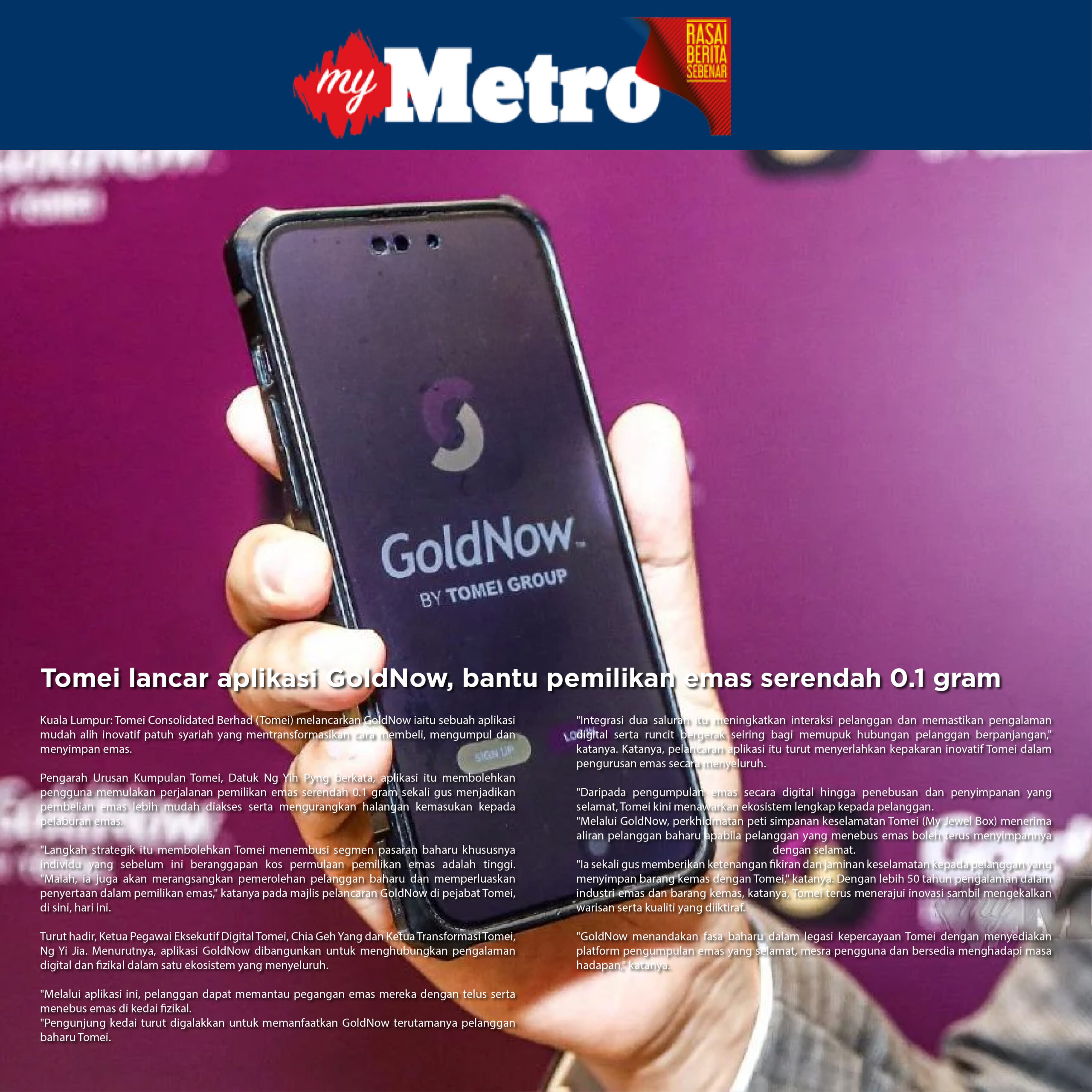 Tomei lancar aplikasi GoldNow, bantu pemilikan emas serendah 0.1 gram Read Article
