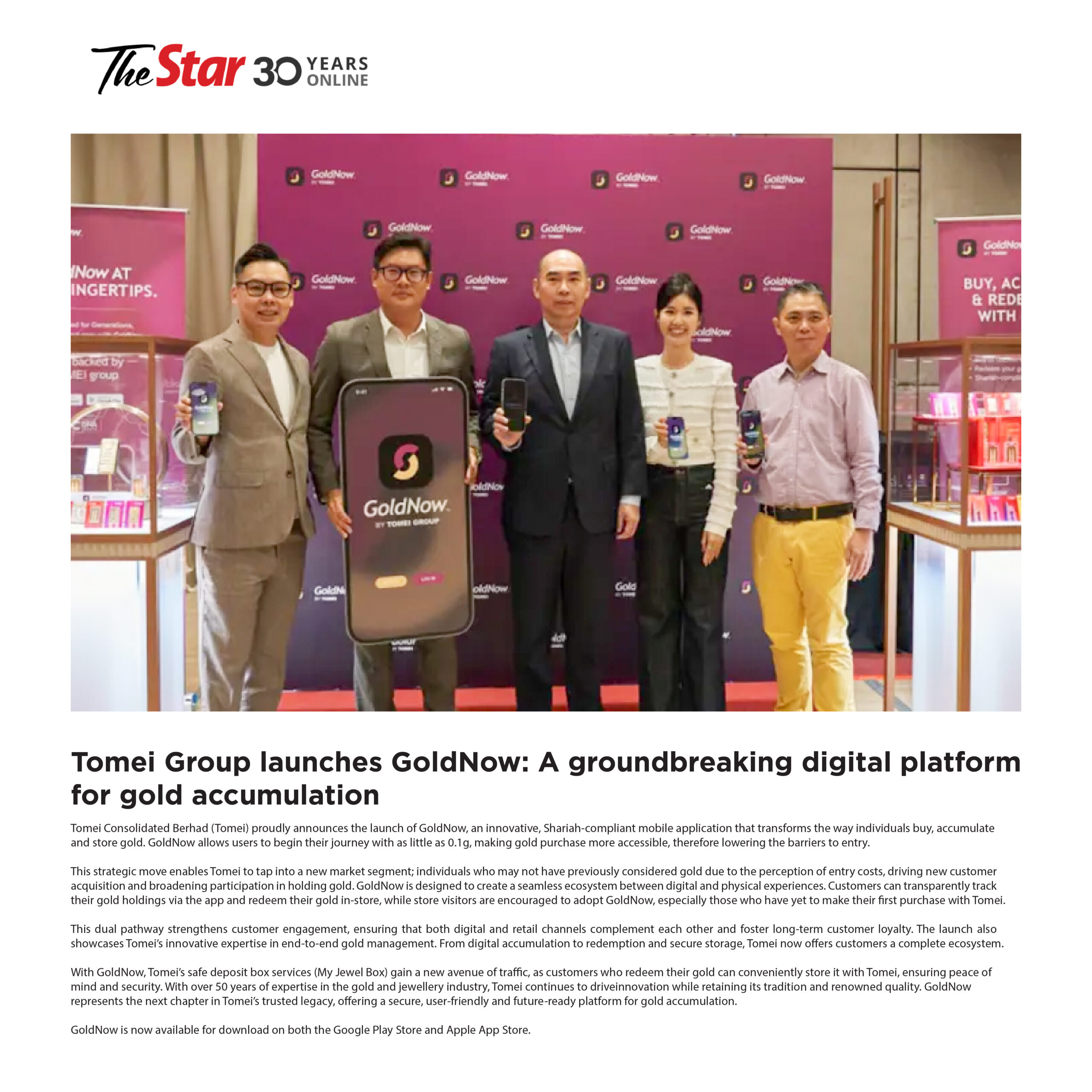 Tomei Group launches GoldNow: A groundbreaking digital platform for gold accumulation Read Article