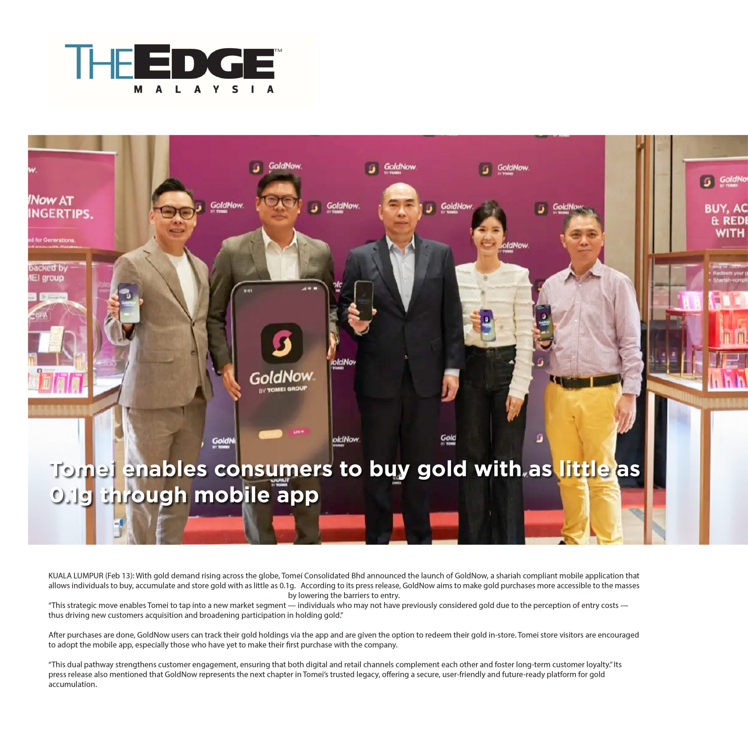 GoldNow by Tomei Group enables consumers to buy gold with as little as 0.1g through mobile app Read Article